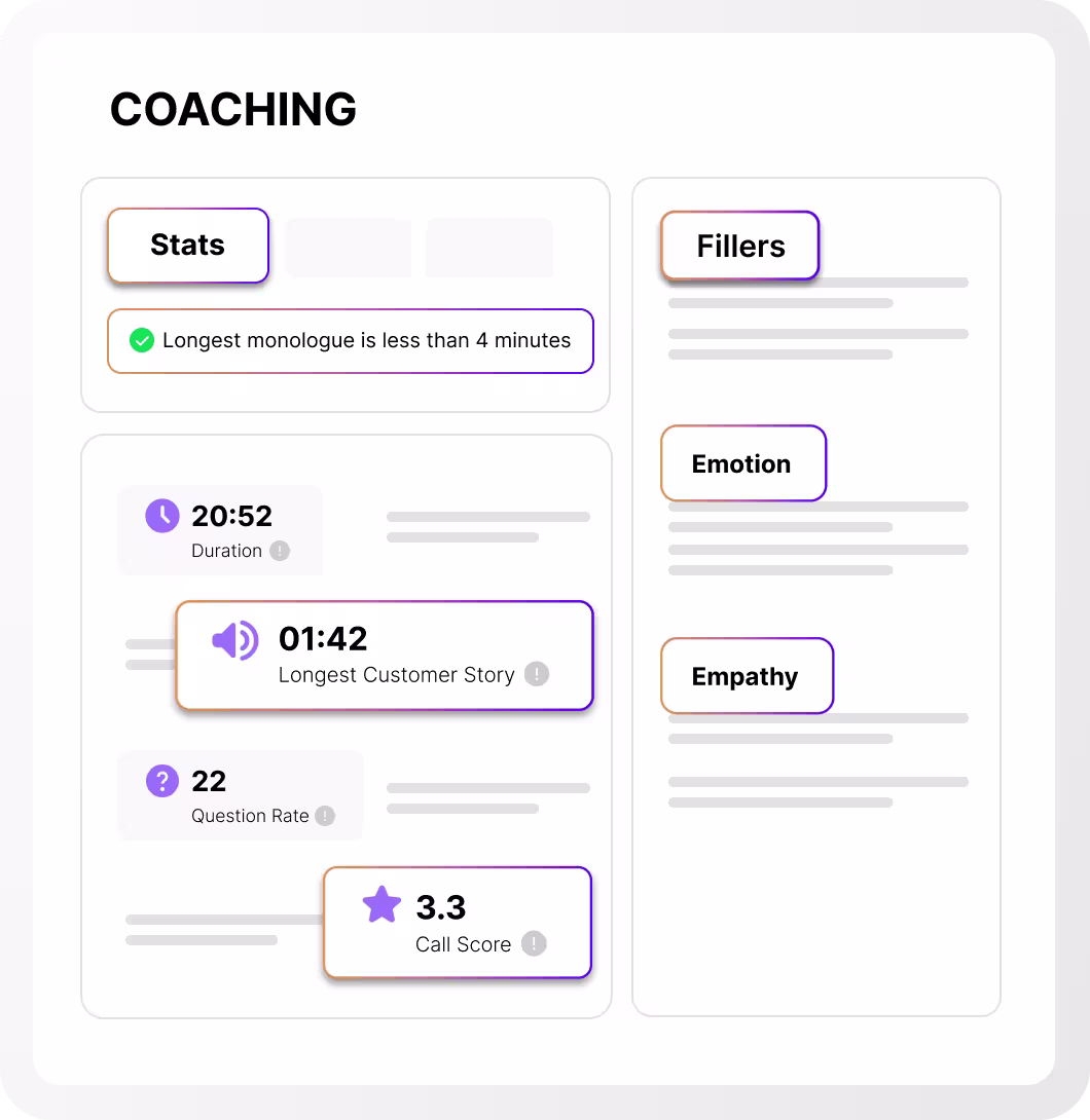 Power continuous performance improvement of your customer-facing teams through AI Roleplay, Coaching, and Call Insights.