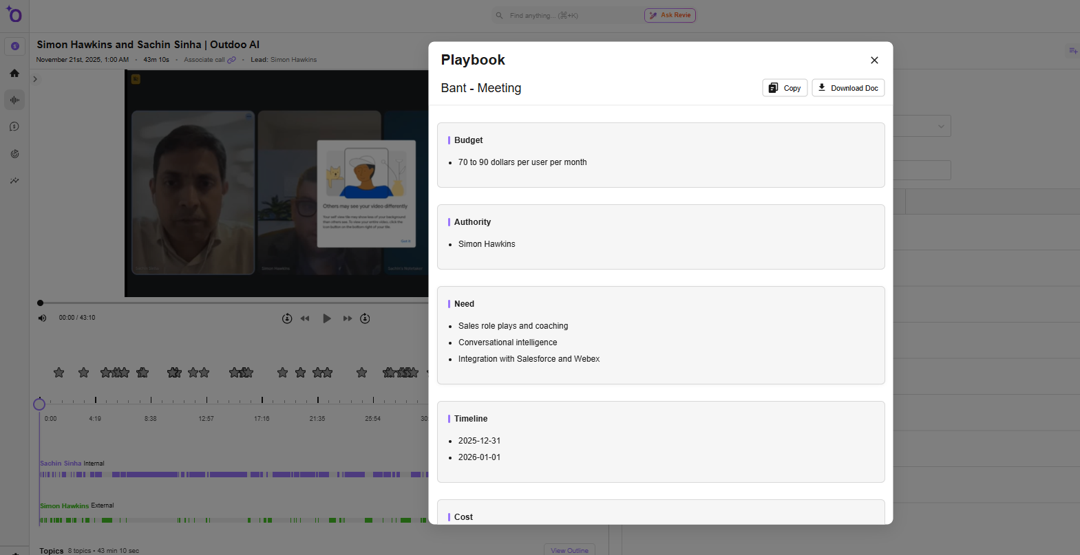 With Outdoo, teams can review real calls through the lens of BANT. Instead of scoring checkbox answers, the system analyzes the actual flow of the conversation:
