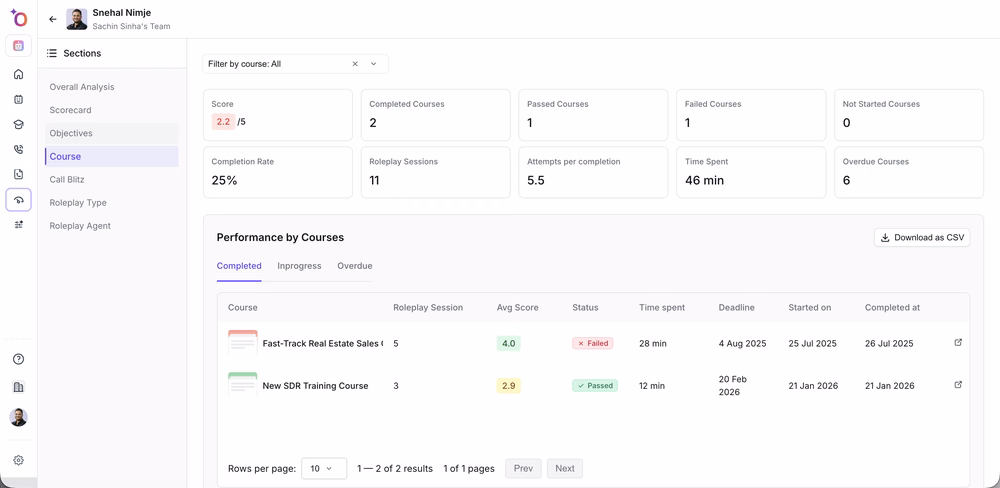 - Coaching specificity: Can managers identify exactly which competency a rep is struggling with, or are they working from general impressions?