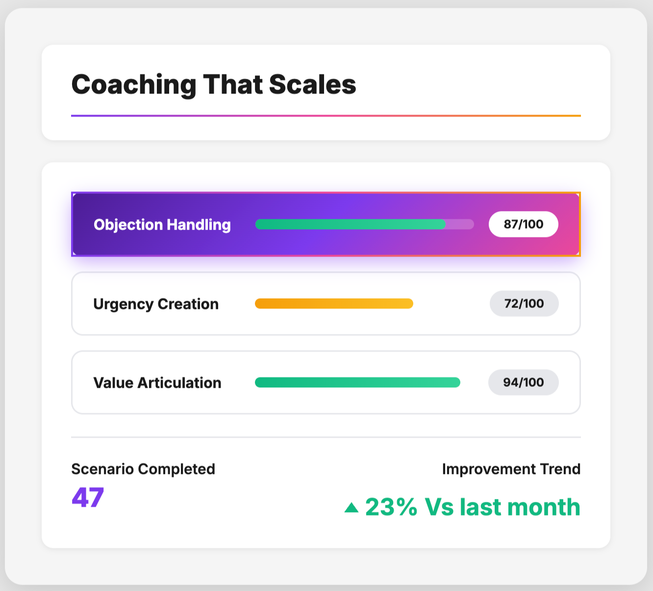 2 out of 3 agents quit within the first year due to lack of training, Outdoo helps CRE teams ramp new agents faster, instead of chasing busy brokers for ad hoc training. Agents practice real CRE scenarios with an AI buyer, seller, or investor, get scored feedback on every conversation, and leaders see clear proof of readiness tied to closings and commissions.