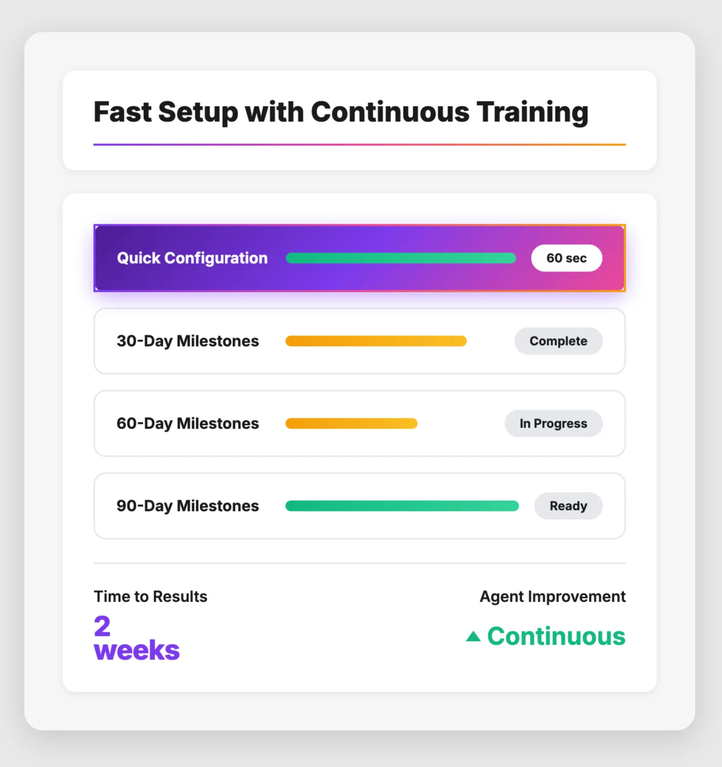 Fast Setup with Continuous Training