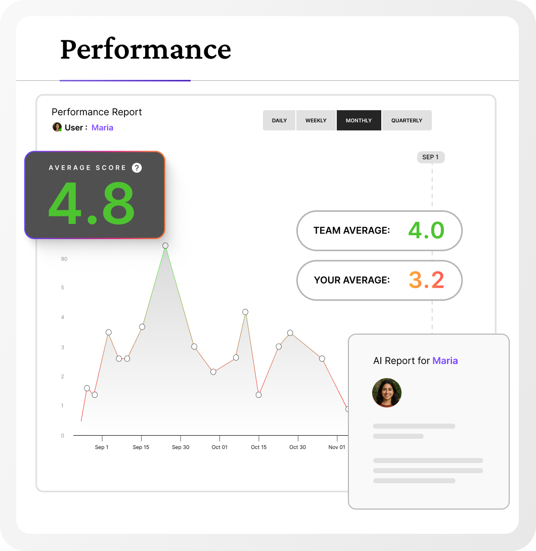 Dashboards connect roleplay scores to listings won, transactions closed, and commissions generated.