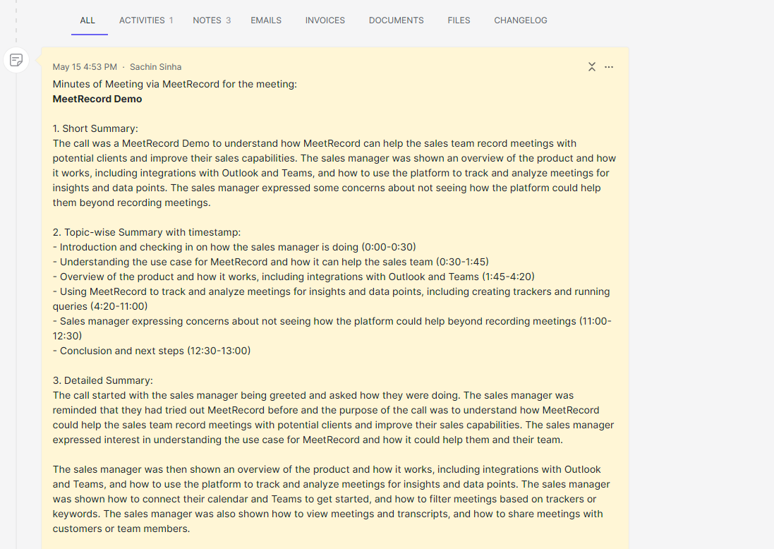 - Meeting Summary: Push meeting summaries from Outdoo directly into Pipedrive, keeping your sales team informed and up-to-date.