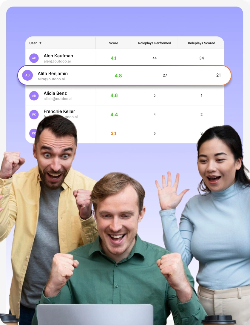 Outdoo enables enablement leaders to drive consistent readiness, scale coaching, and tie training directly to revenue outcomes. With AI roleplays, coaching, and reinforcement, enablement programs stop being “one-and-done” and become engines of measurable growth.